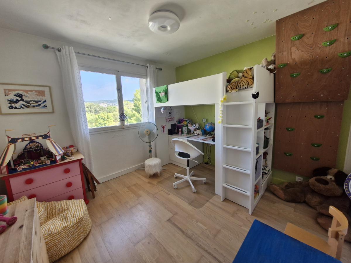 Quartier Olbius Riquier, Accès direct au jardin de la ville, tennis et piscine municipale. A proximité du centre-ville tout en étant au calme, appartement T4 rénové plein sud sans vis-à-vis au dernier étage sans acsenseur. Il se compose d'une entrée, séjour ouvrant sur une terrasse plein ciel assez profonde pour y déjeuner confortablement à l'abris des regards, cuisine indépendante donnant sur une loggia, 3 chambres dont 2 avec placard., salle d'eau, Wc indépendants. Une grande cave et un local vélo complètent l'ensemble. Possibilité de garer plusieurs véhicules au sein de la résidence.