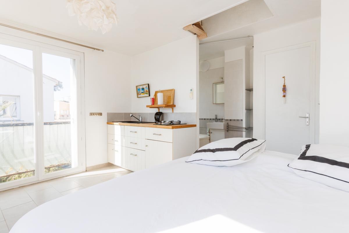 - Un escalier extérieur menant à l'étage dessert un studio avec balcon et vue mer.